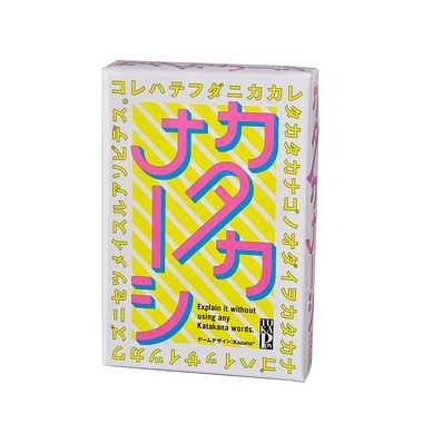 伝わらないもどかしさが面白い、カタカナ一切禁止のパーティーゲーム!「ハンバーガー」「ログイン」「アナウンサー」この言葉、カタカナなしでどう説明しますか?カタカナのお題を、カタカナを使わずに説明し、みんなに当ててもらいます。まず出題者は、お題カードの言葉をカタカナは一切使わないで説明し、他の人は、早い者順でお題を当てます。回答権は1人1回。正解したら、出題者と正解者はお題カードをそれぞれ1枚もらい、正解者が次の出題をします。お題カード1枚につき1点となり、先に10点を取った人が勝ち。「単語だけで」「ラップ風に」などの表現を制限するイベントカードが、ゲームをさらに盛り上げます!