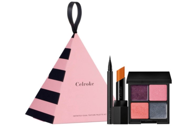 セルヴォークの三角形のボックスに入ったインフィニトリー デュアルテクスチャー パレット キットは、クリスマス限定パレット インフィニトリー カラーを主役にしたメイクアップコフレ。ベースメイクをライン使いで楽しめます。クラシカルな雰囲気を纏ったチャーミングなメイクが完成するのが嬉しいですね。