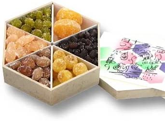 栗、大福豆、六納言、うぐいす、虎豆の6つの鮮やかな甘納豆の詰め合わせ。食感と触感にこだわっており、程よい甘さでお年寄りでも食べやすい和菓子です。