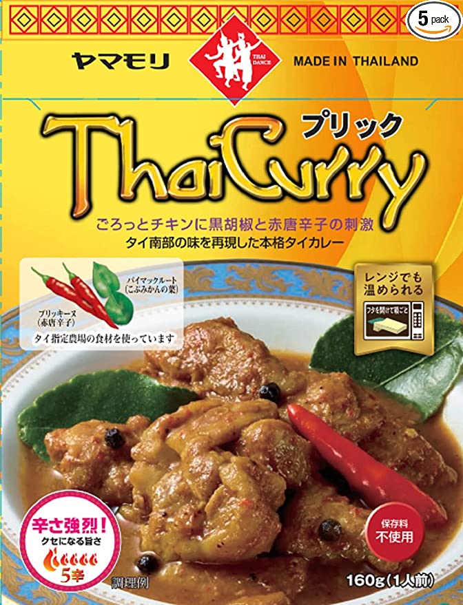 | スパイス | ○唐辛子、ターメリック | 種類 | タイカレー | 内容量 | △160g | 値段 | △ | 辛さ度合い | ○ | 具材 | 鶏肉、玉ねぎ、シャロット、にんにくなど |