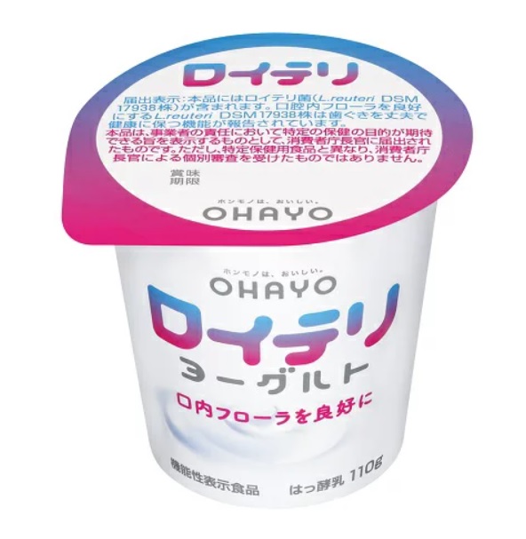 口内フローラ(口腔内フローラ)を良好にするロイテリ菌が配合された機能性表示食品のヨーグルトです。このロイテリ菌は、歯ぐきを丈夫で健康に保つ機能があると言われています。また、生乳を使用して香料・安定剤は使っていないので、ミルク本来の風味を残して、スッキリした風味が特徴です。また、歯に優しいキシリトールを使い、砂糖を使用していません。