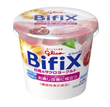 | カロリー | ○68kcal(100g辺り) | 食べやすさ | ◎5種類 | 健康食品表示 | × | 菌の腸への届きやすさ | ○ | メーカー | 江崎グリコ株式会社 | 包装及び内容量 | 大容量(プレーン375g、他330g) | 菌種類 | ビフィズス菌BifiX |