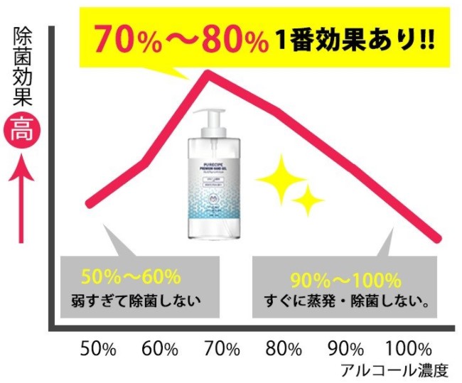 濃度70%以上95%以下のエタノールだとより効果的。