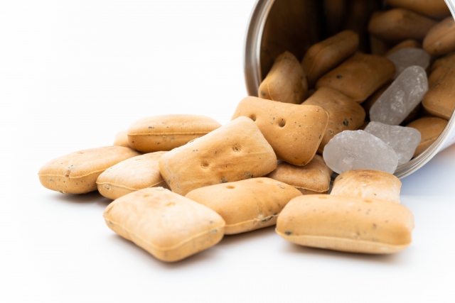 お腹に溜まる食事としてはアルファ米やパン類がおすすめですが、子供用やこまめな栄養摂取におすすめなのはスナック類(ようかんやビスケット)です。