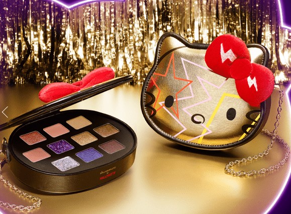 シュウ ウエムラ×ハローキティコラボ!うっとりするほど印象的な旬カラーで アイとリップをドレスアップ。まばゆく大胆なメイクアップルックでパーティーの主役に。東京のナイトシーンにインスパイアされた、まばゆいほどに輝くカラーと、ロックなハローキティ モチーフに引き寄せられるアイ パレットです。