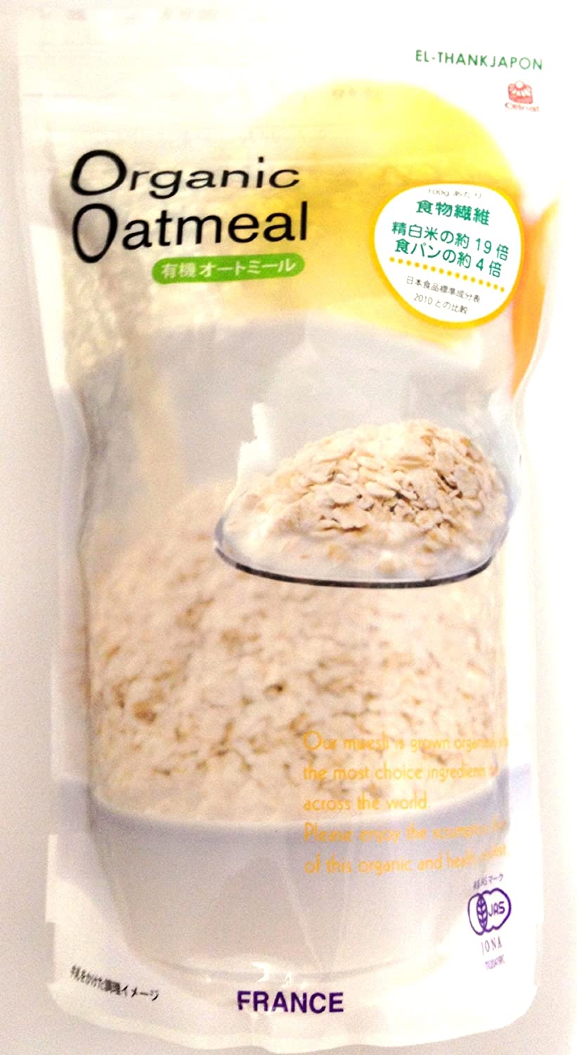 有機栽培されたオーツ麦100%。粒が大きく、しっかりしていると評判が高いオートミール。蒸気で加熱してローラーで押しつぶしていますので、豆乳や牛乳をかけてそのまま食べられます。ナッツやフルーツと一緒に食べるとさらに栄養価が更にUP。
