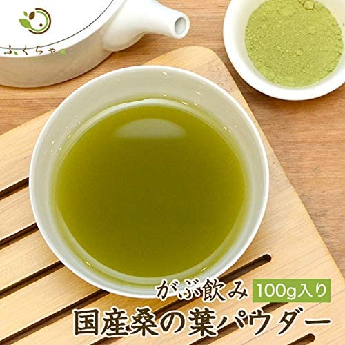ダイエットサポートにふくちゃのがぶ飲み国産の桑の葉茶(マルベリーリーフ)パウダー。桑の葉茶はダイエットをサポートするお茶として、おススメのノンカフェインティーです。桑の葉に含まれている成分が、食べ過ぎた時にパワーを発揮し、ダイエット成功へと導いてくれます。また、食物繊維もたっぷり含まれています。その量はゴボウの約8倍、小松菜の約43倍です。豊富な食物繊維が不快な状態を調え、正しい環境作りをサポートします。そんな桑の葉茶をふくちゃでは、ご家族みなさんで「がぶがぶ」お召し上がりいただけるように、さっぱりとした